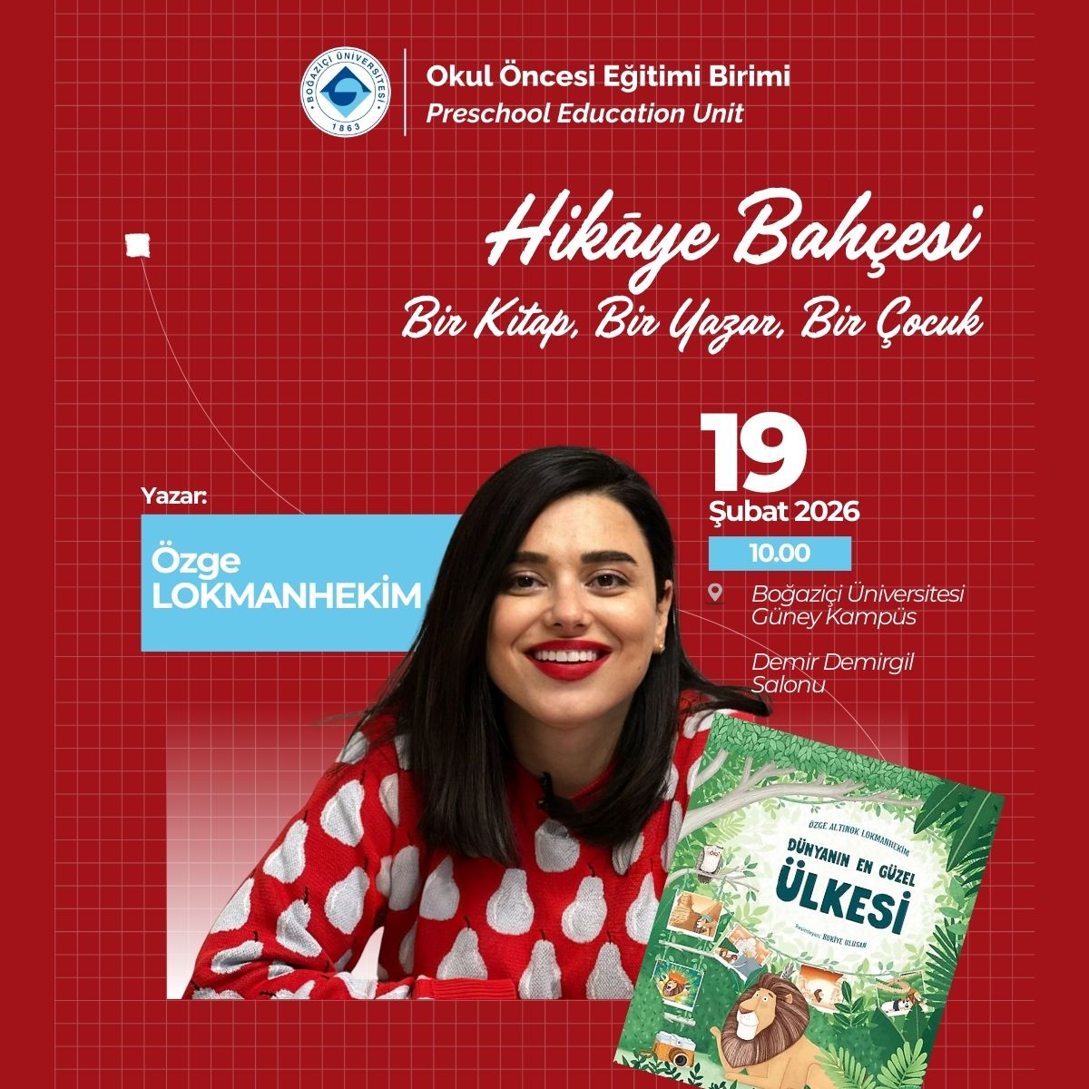 “Bir Kitap, Bir Yazar, Bir Çocuk” buluşmalarımızda, Özge Lokmanhekim ile Dünyanın En Güzel Ülkesinin sayfalarında dolaşıyoruz. Sorular soracağız, düşüneceğiz, hayal edeceğiz… Belki de dünyanın en güzel ülkesini yeniden tanımlayacağız.