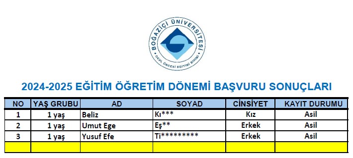 2024 - 2025 eğitim öğretim yılı yedek liste başvuru sonuç listemiz açıklanmıştır. Yedek liste kayıt işlemleri 11.07.2024 - 12.07.2024 tarihleri arasında birimimizde gerçekleştirilecektir.