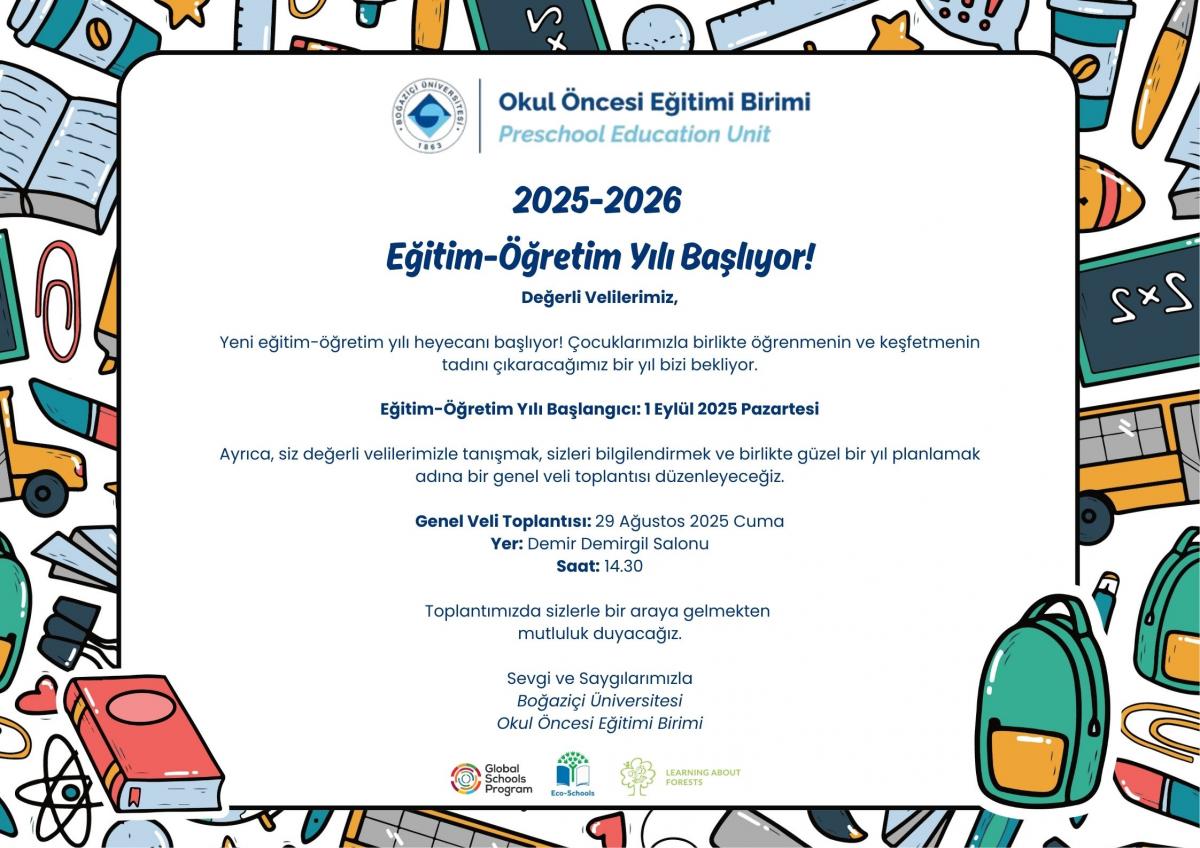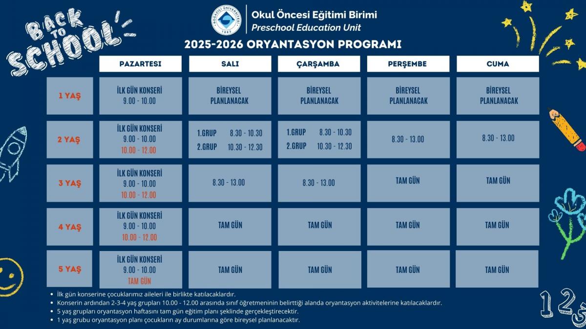 2025 - 2026 eğitim öğretim yılı başvuru sonuç listemiz açıklanmıştır. Asil liste kesin kayıt işlemleri 07.07.2025 - 18.07.2025 tarihleri, yedek liste kayıt işlemleri 21.07.2024 - 23.07.2025 tarihleri arasında Okul Öncesi Eğitimi Birimi Ana Bina'da gerçekleştirilecektir.