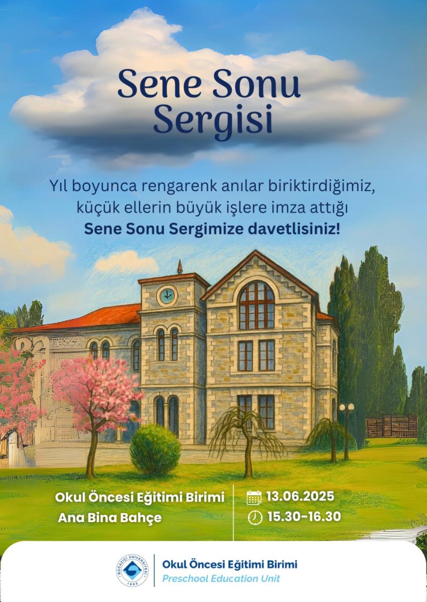 Öğrencilerimizin hayal gücü ve emeğiyle ortaya çıkan güzel çalışmalarını sizinle paylaşmak büyük mutluluk. Bu özel günde birlikte olmak ve çocuklarımızın yüzlerindeki gülümsemeyi paylaşmak için sizi "Sene Sonu Sergimize" davet ediyoruz. Katılımınız, öğrencilerimizi ve bizi çok mutlu edecektir.
