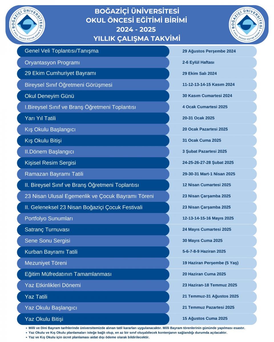 Birimimizde uygulayacağımız program tarihleri ektedir. Sizlerin desteğiyle bu süreci daha da anlamlı kılacağız. Hep birlikte güzel bir yıl geçirmeyi diliyoruz!